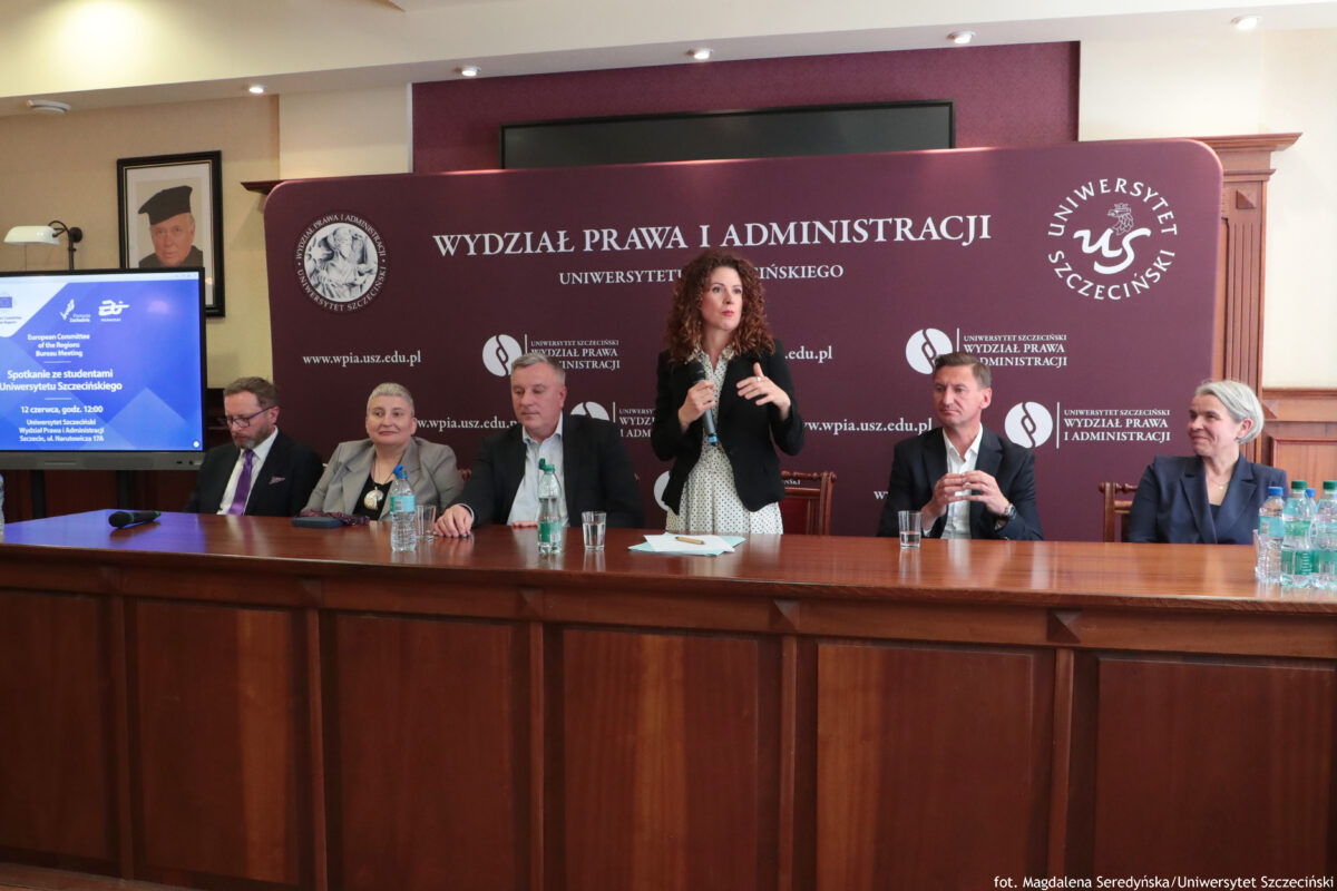 Students of the University of Szczecin took part in a debate on “Economic stability in Europe and the entry of young people into the labour market” and talked with Kata Tüttő, President of the European Committee of the Regions, and Olgierd Geblewicz, Marshal of the West Pomeranian Voivodeship and host of the meeting of the Presidium of the European Committee of the Regions in Szczecin.